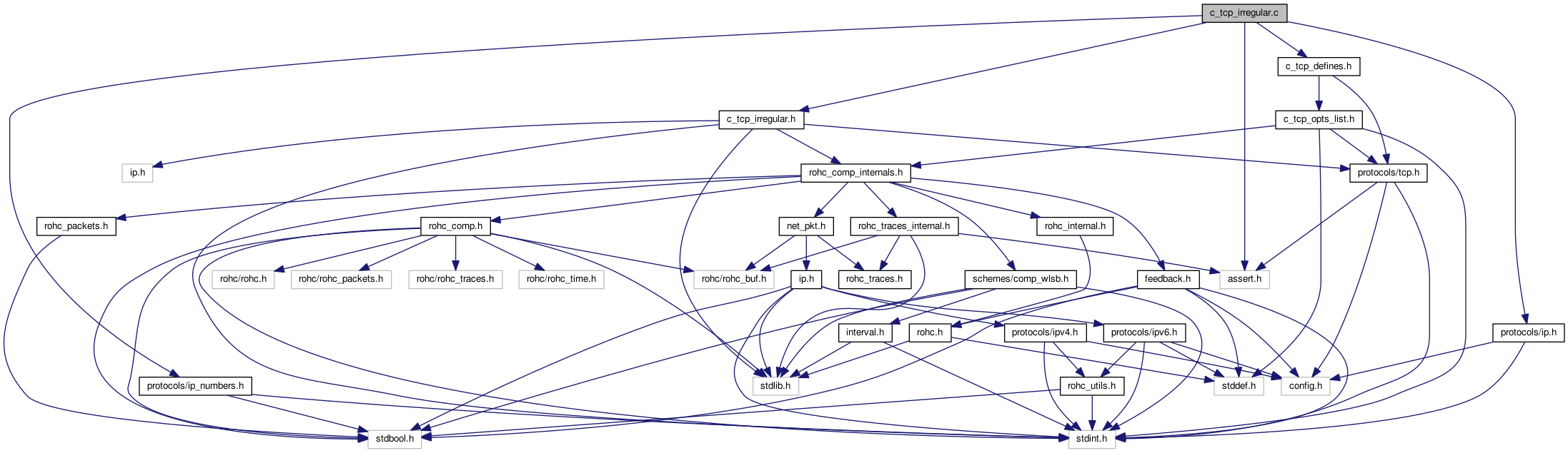 | int | tcp_code_irreg_chain (struct rohc_comp_ctxt *const context, const struct ip_packet *const ip, const uint8_t ip_inner_ecn, const struct tcphdr *const tcp, uint8_t *const rohc_pkt, const size_t rohc_pkt_max_len) |