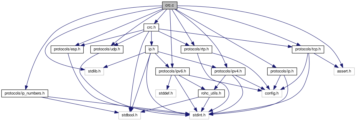 #include "crc.h"#include "protocols/ip_numbers.h"#include "protocols/ip.h"#include "protocols/ipv4.h"#include "protocols/ipv6.h"#include "protocols/udp.h"#include "protocols/rtp.h"#include "protocols/esp.h"#include "protocols/tcp.h"#include <stdlib.h>#include <assert.h>